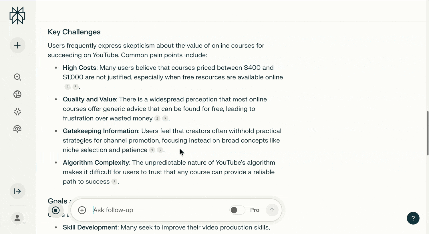 You give it the below prompt, and it analyzes user discussions to understand their challenges, needs, and preferences – let’s use a YouTube coaching program as an example.
