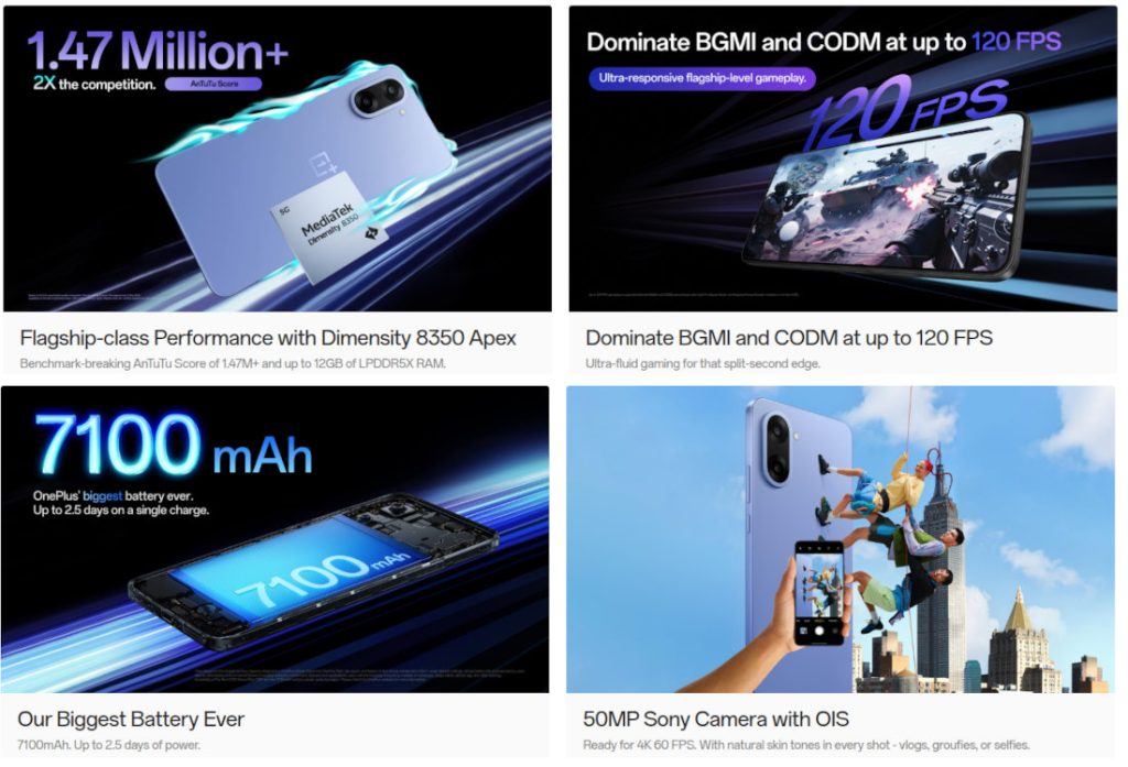 The most notable thing about the Nord CE5 is its powerful MediaTek Dimensity 8350 Apex chipset. OnePlus claims that the phone scores over 1.47 million points on AnTuTu, making it the most powerful phone in its segment. It will also come with LPDDR5X RAM, offering better speed and efficiency. The company says the phone can deliver a smooth 120fps gaming experience in popular games like BGMI and Call of Duty Mobile.